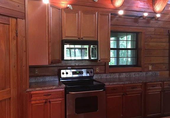 Recently renovated custom-built Cypress Log Home sitting on 11+ gorgeous acres with open pasture areas for your animals plus some 'grand-daddy oaks' scattered throughout the property for a park-like feel. The first floor of the home has a large great room with soaring timber ceilings with a wood burning stove, an open kitchen with all new counters and cabinets plus 2 bedrooms and a full bathroom. Notice the sparkling wood throughout the home! Up a few stairs to the loft bedroom experience amazing views with a luxury bathroom and huge closet! Downstairs there is a huge open room for entertaining or whatever you want with a wet bar, media plug-ins and built-in shelves, laundry room, a half bath plus 1 bedroom & an office/den with a built-in desk & storage! Outside there is a pole barn for storage as well. This home & property really needs to be seen to appreciate -- call today for an appointment!