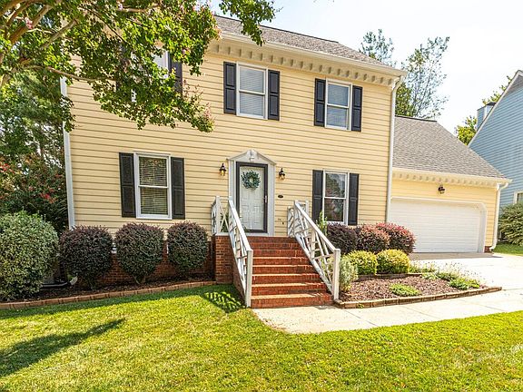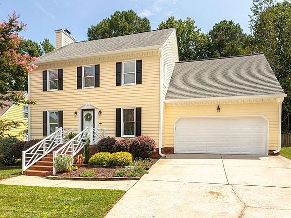 Classic Beauty in popular Surrey Meadows! This charming home includes hardwood floors, extensive trim and fine details throughout. Kitchen offers granite counters, tile backsplash, pantry, and a sunny breakfast area with a bay window. Stay warm next to the fireplace in the family room and enjoy meals in the dining room that features a double French door entry. Journey upstairs and you'll find the owners suite that includes a walk-in closet, ceiling fan, double vanity, jetted tub, and a tiled walk-in shower. There's also three additional bedrooms, a full bath, and laundry room on the 2nd fl. Up one more flight of stairs to the finished 3rd floor bonus room, perfect to use as an office, media room, or playroom. Relax in the peaceful screened porch or entertain on the stone patio. The fenced backyard adds even more privacy. Access to a greenway trail is at the end of the street and leads to the nearby Seagroves Farm Park. Located just a stroll to downtown Apex, and minutes from Knights Play Golf, Beaver Creek Shopping and easy access to US-1, Hwy 55, and US-64!