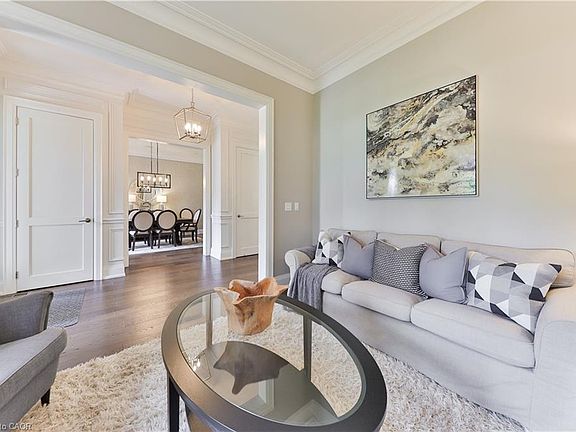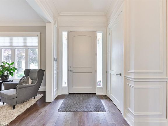 Every so often, a home comes along that sets a new benchmark. This custom-built residence combines timeless architecture, magazine-worthy interiors, and a resort-style backyard with over 6,100 sq. ft. of finished living space. Set on one of the largest pie-shaped lots in the neighbourhood (over 45% larger than average) and just 3km to Appleby College, it offers a rare sense of scale and privacy. Southwest-facing gardens showcase a heated saltwater pool, tiered lounging areas, ambient lighting, and mature hedging. Inside, 10’ ceilings, wide-plank hardwood, and bespoke millwork create quiet sophistication. The open-concept kitchen and family room with gas fireplace and French doors connect seamlessly to the gardens. A formal living room, elegant dining area, and private office complete the main floor. Upstairs, the primary suite rivals a luxury hotel with spa-inspired ensuite and dressing room, complemented by 3 bedrooms and laundry. The finished lower level adds a rec room with wet bar, gym, sauna, bedroom, and bathroom, ideal for teens, guests, or multigenerational families.