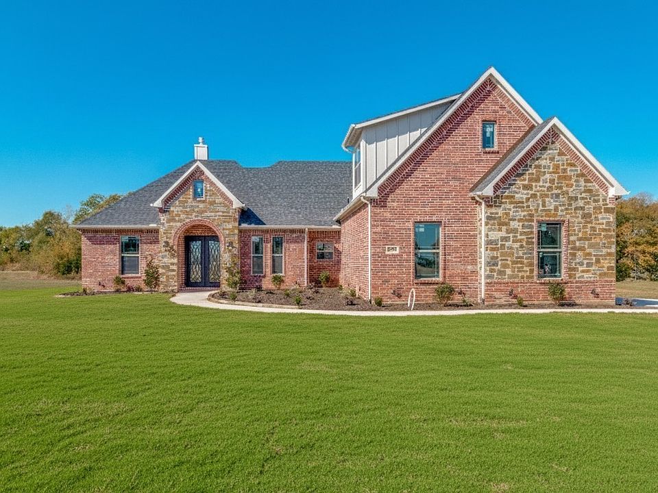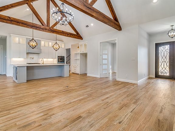 Seller is open to all reasonable offers! Stunning, never been lived in NEW CUSTOM home on an expansive acre lot with no HOA. The arched iron front doors greet you into the impressive light and bright living room with hardwood floors, fireplace, soaring ceilings and reclaimed wooden beams. Chef's dream kitchen with custom cabinets, massive quartz island, double ovens and pot filler that opens to the living and dining spaces. Retreat to the spacious primary bedroom with dreamy en suite bath featuring a stand alone tub, oversized shower with rain shower head, his and her vanities and a luxurious walk in closet! Office with French doors off the living room. Large guest bedroom with walk in closet has 2nd full bath around the corner. 3rd and 4th downstairs bedrooms share third full bathroom. Upstairs you'll find a spacious 2nd primary suite or bonus room with walk in closet and ensuite 4th bath. Covered back porch overlooking mature trees in the backyard. House slab sits on 47 piers with soil injections and spray foam insulation. Ready to move in!