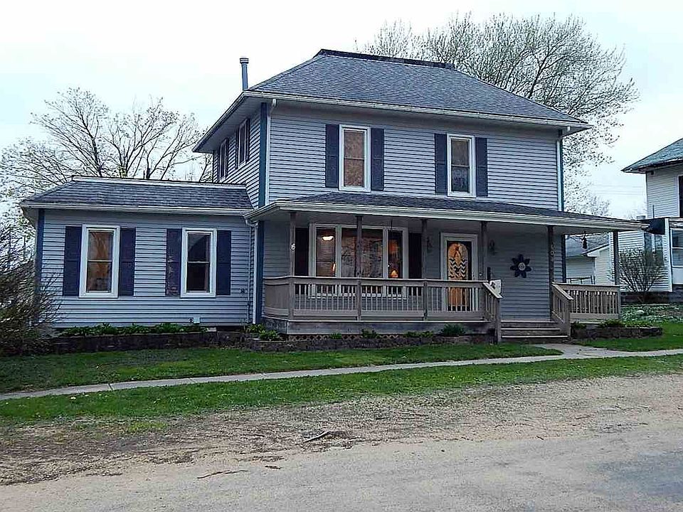 Enjoy small town living in this charming 2 story home that has been beautifully updated! You can watch the fireworks from the front porch on the fourth of July. Master bedroom and laundry are located on the main floor. The character of the older woodwork remains. Lots of space to grow and plenty of storage. Spend quiet evenings on the maintenance free back deck. 2 car detached garage.