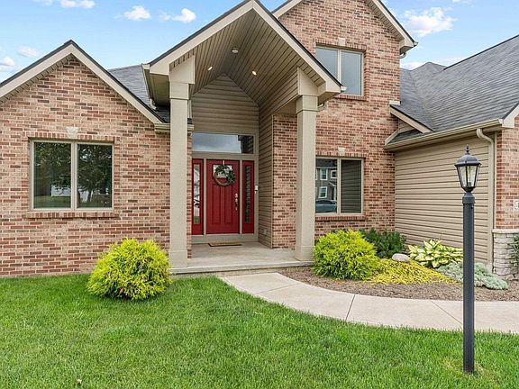 Elegant brick home with modern luxury, located in the highly sought-after Morning Side subdivision, right across from the popular Newton Park. Beautifully designed 3-bedroom, 2.5-bathroom home built in 2018. Nestled on a spacious 1-acre lot with pond views, this home offers modern amenities and peaceful living. As you enter, the grand foyer welcomes you with soaring ceilings, contemporary chandelier, and dark accents that set the tone for the rest of the home. The main floor features an open-concept layout. The living room is both cozy and sophisticated, with a built-in surround sound system, and a projector enhancing your entertainment experience. The gourmet kitchen is the heart of the home, featuring modern cabinetry, sleek countertops, and a stunning tile backsplash. The kitchen is fully equipped with modern appliances, including a built-in wine fridge on the island. Large windows allow natural light to flood the space, and the adjacent dining area opens directly to the deck. The main level boasts a luxurious master suite, complete with an en-suite bathroom and a spacious walk-in closet with custom shelving. For added convenience, a half bath and a well-appointed laundry room are also located on the main level. Upstairs, you’ll find two additional generously sized bedrooms, a full bathroom and a versatile loft area. The walk-out unfinished basement presents an incredible opportunity to expand your living space. Already plumbed for a full bath, this area is a blank canvas awaiting your personal touch. Outside, the expansive deck provides the perfect setting for outdoor relaxation or entertaining. The property also includes a 3-car attached garage and an expansive driveway, providing plenty of parking and storage options. Don’t miss the chance to own this beautiful home in Lakeville!