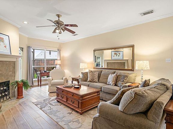 Welcome to this meticulously kept one-owner home! Located in a serene setting, this property offers the perfect balance of privacy and community. Situated adjacent to green space and walking paths, you'll enjoy the company of fellow walkers as you explore the picturesque lakes and tranquil surroundings. This spacious single-story residence boasts a well-designed floor plan, featuring four bedrooms and 2.5 baths. The exterior has recently been painted, w/new landscaping adding to the home's curb appeal. Upon entering, you'll be greeted by a double-sided fireplace, creating a warm and inviting ambiance in both the living area and adjacent space. The expansive breakfast area is perfect for enjoying meals with family and friends, while the updated owner's suite offers a spacious retreat. ***Notable upgrades include a new roof in 2021 and a recently replaced AC system, ensuring comfort and peace of mind. The addition of a GE double oven in the kitchen enhances your culinary experience, while the large covered extended patio, complete with gutters, provides the ideal spot for outdoor gatherings and relaxation. For added convenience and privacy, the fence surrounding the fully fenced rear yard is just 1 year old. This house offers the perfect combination of thoughtful design, desirable features, and a prime location. Don't miss the opportunity to make it your own! Schedule a viewing and experience the charm of this wonderful home.