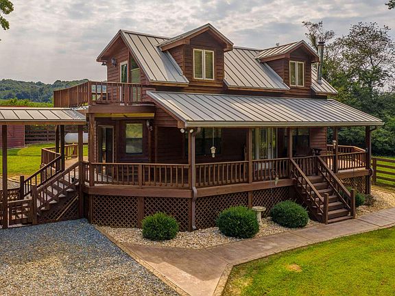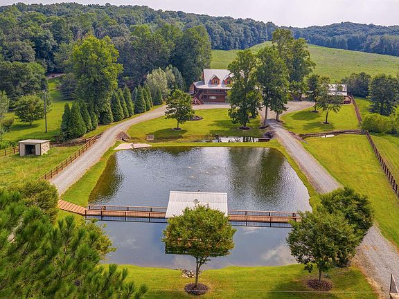 5 Bedroom, 6.5 Bath Custom Home with complete 14' wrap around, covered deck/porch. Two wood burning stove / rock fireplaces. Organic garden beds outside the custom kitchen. Kitchen includes two large pantries, pot filler over stove and bar seating. Basement is designed to entertain. Large open spaces, kitchen / bar, theater room, double doors that open to patio, lake and bon-fire pit. 3 Car garage with extra tall garage doors and additional heated and cooled workroom. Lake stocked with fish, sprouting fountain, rock waterfall, pedal boat. Dock with entertaining veranda, grille, firepit, flatscreen TV. Fully landscaped front yard with large rock bon-fire ring, custom chairs, trees, running creek, lake with dock, fenced horse pasture, completely fenced in with security cameras and solar operated automatic gates. 2 Bedroom 2 Bath, 1,800 sf guest house. Property is in a cul-de-sac in a beautiful country setting. Three floors in the front, 2 floors from the back with ramp access. Standing seam metal roof with titanium underlayment and 30 year warranty.