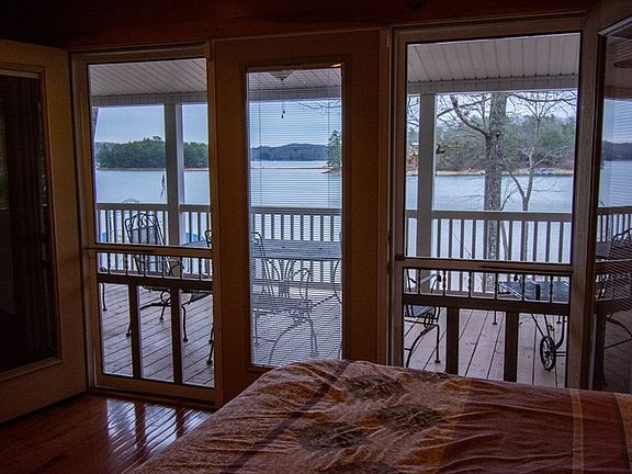 Perfect location on Lake Blue Ridge! Very close to Downtown Blue Ridge. Open floor plan with high ceilings and wood burning fireplace. Large suite with walk in tiled shower and jetted tub on the main floor. Opens to porch with view of the lake. Two car garage with storage/office above.
