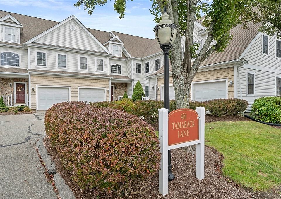 Welcome to The Gables and 408 Tamarack Lane (tucked away off the main entrance on Hampton Way)! IMPRESSIVE, UPDATED, BRIGHT, OPEN, LARGE 5/2/2 "one level" condo with 1,886 sq.ft. living area. NUMEROUS recent improvements include granite counter kitchen with S/S appliances, refinished hardwood floors, carpeting, interior painting, custom blinds, granite counter baths with glass shower door, slider door to deck, keyless entry and more! Additional features include beautiful gas fireplace, 2 generously sized BR's with main bath in one of the BR's plus ample closets throughout. Large utility room with stackable washer/dryer, gas heating and central air. Newer acorn chair lift for easy access to main floor if needed. 1 car attached garage, front porch, large rear deck, ample parking. Amazing clubhouse- putting green, exercise room, tennis and basketball court. Conveniently located to public transportation, shops, schools, restaurants, Ames Nowell State Park and commuter rail. Pets ok!