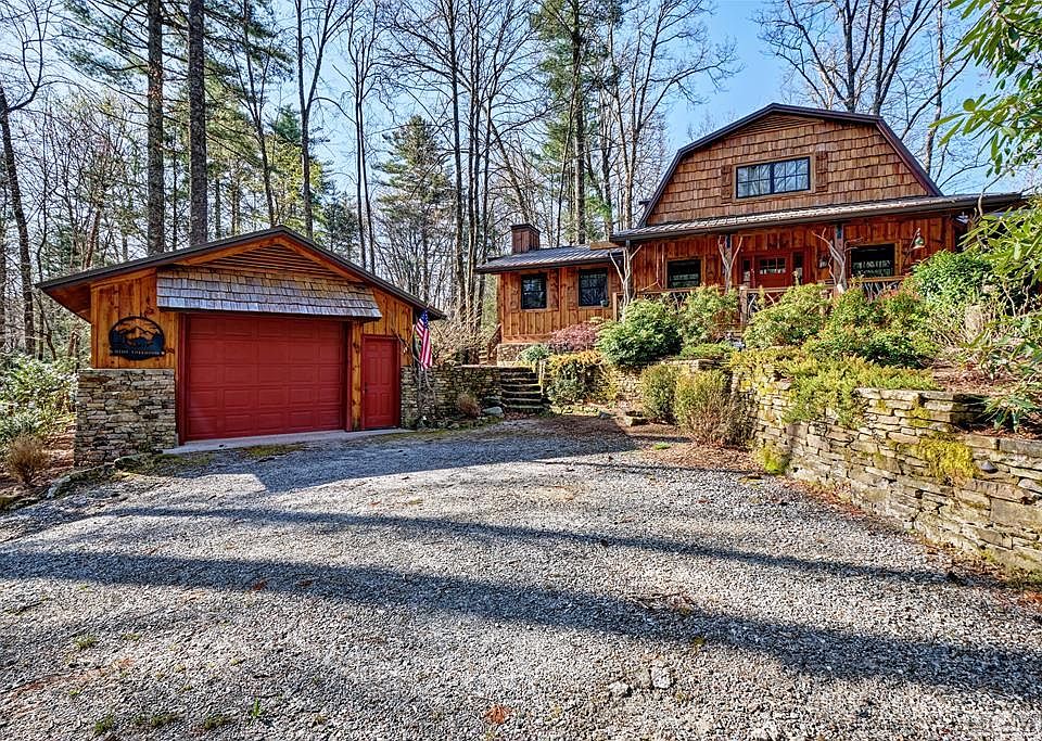 Located in the center of town, this perfect mountain home has everything you need for Cashiers living at it finest! Just imagine your perfect, charming cabin retreat just a few minutes walk to Buck's Coffee Shop, Cashiers Farmers Market and The Village Green! This home has been lovingly maintained and updated including a fabulous, screened-in outdoor kitchen and living space, brand new outdoor shower, and converted shed that the current owner uses as a fly-tying station! Private primary en-suite on the main floor with a guest bedroom and office space upstairs for guests. The open floor plan allows you to flow effortlessly among the living room, kitchen, dining space, and out to the screen porch. The home also features a fenced in backyard, pull through driveway, and newly added single car garage. You will feel at home as soon as you step through the door!