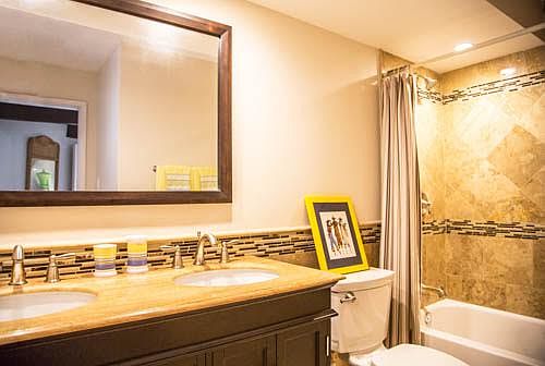 Enjoy this perfectly maintained, 2 bed/2bath with amazing views of the Caribbean and Buck Island. The condo is move in ready with a lovely tropical and tasteful feel throughout. The two master suites are located on separate levels. The Great room, located on the mid-level between the upper and lower master suites, includes a renovated kitchen, a dining area and open & bright living space with sea views. Just off the Mid- level is a patio, perfect for Grilling or outside dining. Located on the 9 course Golf course, the community amenities also include a large hilltop pool, two tennis courts, beach access across the street, TLC Kitchen Café next to Golf Pro Shop & Duggan's Restaurant. The monthly condo fees include: Common area maintenance: Pool, grounds, tennis courts and clubhouse Fully staffed office and maintenance staff Trash pick up Monthly pest treatment