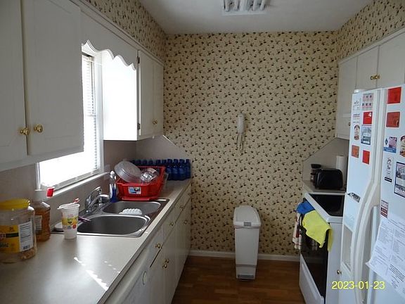 Open plan contemporary home with fenced yard and shade trees. Three bedrooms and two full bathrooms, great room with fireplace, dining area and kitchen. Well maintained. Original wood windows have been replaced with energy efficient, low maintenance vinyl windows.
