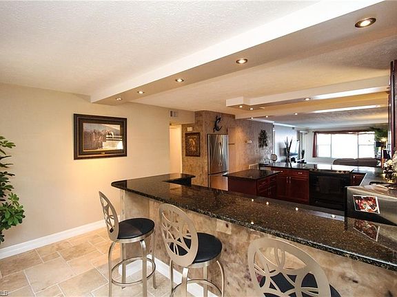 Ground level 2/2 bedroom with vast open views of Bimini basin!! CHECK OUT VIDEO & AERIAL! Impact glass windows, totally updated kitchen includes: stainless steel appliances with island and slide outs, travertine stone throughout, indirect LED lighting under custom cabinets, 110 sq. ft of granite countertops, crown molding with 6" base molding throughout, Venetian plastered hand-troweled walls! 500' of dock on property directly on the Basin! Heated pool and much more for that perfect beach or fish getaway! WALK OR BIKE TO RESTAURANTS, SHOPPING, and MORE!! Close to Sanibel, Captiva and Ft.Myers Beaches!