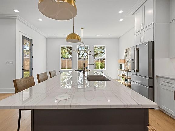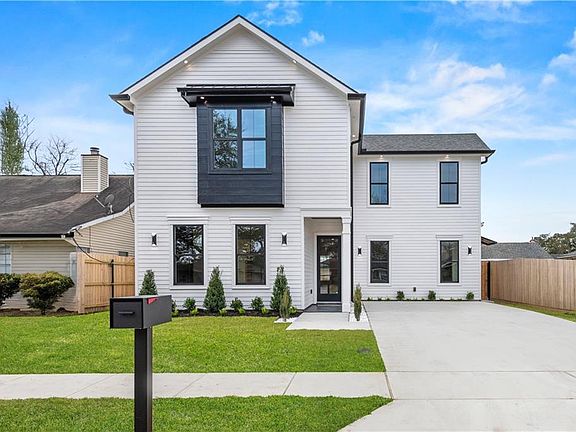 Stunning Contemporary Home in the Heart of River Ridge! This 4-bedroom, 3-bathroom home is designed for luxury and entertainment, featuring a classic office with chic glass french doors and a custom passive wine cellar. The open floor plan, soaring ceilings, and engineered wood flooring create a sleek, modern feel. The dream kitchen boasts a 36” stove, oversized island, double-stacked cabinets, a stunning butler’s pantry, and outlets inside kitchen drawers. High-end appliances and designer light fixtures elevate the space. Stay connected with hardwired internet, a speaker system, and pre-wiring for a portable generator. Energy-efficient features include spray foam insulation, a tankless water heater, and a fortified roof. A large laundry and mudroom with side-door access adds convenience. The oversized backyard is perfect for your dream pool and entertainment area.