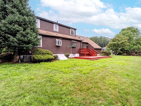 Meticulous Classic New England Cape sits on a level corner lot. Lovingly cared for by the same owners for many years it is ready for a new owner to add their personal touch and start making new memories. Enter the spacious kitchen/dining area with a cathedral ceiling and French doors that afford much natural light and lead to a deck overlooking a park like private backyard yard, framed with mature trees, perfect for entertaining. This four bedroom home has a 3/4 bath with a new shower on the main floor plus a 1/4 bath upstairs that can easily be expanded. Spacious living room off the kitchen completes the first floor. Second floor offers two bedrooms and lots of storage. Partially finished lower level makes for an ideal bonus room. Large mechanical room with additional storage. Additional features include public water and sewer, irrigation system, central air, newer Jenn-air range, professional landscaping, one car garage and large shed. Showings begin with OH, July 13th 11-1