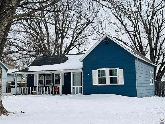 Charming and historic three bedroom home in the lovely town of Holton, KS! Great location close to the town square, shopping, and restaurants. Beautiful covered front porch, perfect for relaxing and watching the world go by! As you step inside this cozy home, the open floor plan creates a spacious and airy feel. New carpet in one of the bedrooms and everything you need all on one level. Nice backyard with a carport, shed, and extra parking. Don't miss out on this cute place with a unique blend of historic character and modern updates!