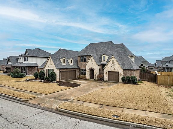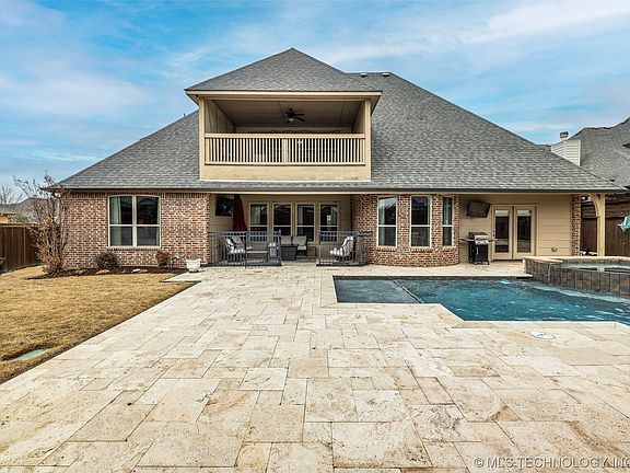 The only Bixby west home currently with pool. Luxury finishes and a gleaming saltwater pool! This 5 bed and 5 bath home has so much space! 3 of the bedrooms are downstairs with three baths. A large open concept living with two dining spaces or an open office area and a lovely covered patio overlooking the pool. Large game room up, two beds and two baths with the second covered patio! Other mentionable features are warm neutral colors, hardwoods, newer carpet, whole home water filter system and a separate 3rd car bay that is great for a hobby shop! Located in the master-planned community Yorktown in Jenks with walking trails, sports fields, playground, fishing ponds, pool and social activities. Located in the Bixby West school district and close to downtown Jenks, Glenpool and Bixby, providing a plethora of activities, food options, and shopping!