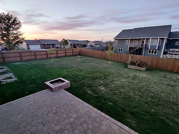 Outside the house features mature trees and beautiful landscaping. The large backyard includes a cedar privacy fence and a paver patio with a fire pit off the covered deck.