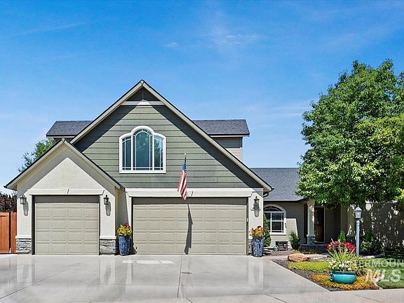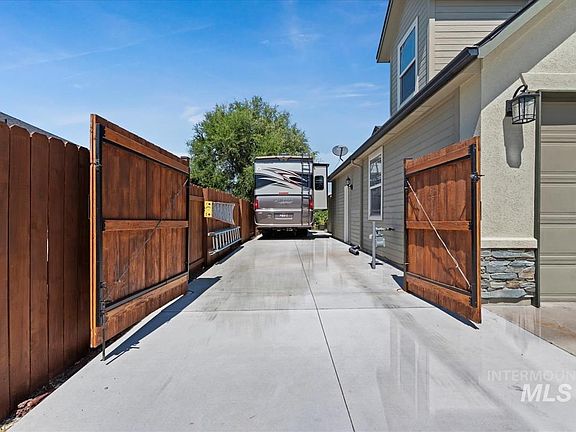 Well-maintained, move-in ready home with side yard RV parking on large concrete pad - includes 50 Amp RV hookup. Well-appointed single-level split floor plan with vaulted ceilings, gas fireplace, Central Vac, and refinished hardwood floors in the kitchen & dining area make this home highly desirable. Bright den/office/dining room greets at the home's entrance. Ample pantry in kitchen with multiple prep spaces on granite. Private upstairs 750+SF bonus room w/dormer windows, full bathroom & walk-in closet can be used as a guest suite or 4th BD. A stunning backyard oasis with fire pit, custom paver patio design is partially covered for a bbq gas stub and outdoor mount TV, perfect for entertaining. Discerning clients will appreciate a large 3-car garage with 8' high doors & deep 3rd bay for a shop or extra storage. Side yard has a spacious built-in shed for storage & gardening tools. 1 blk to Settlers Park and near Meridian's top shopping destinations. This one has it all. Call today for your showing appointment.