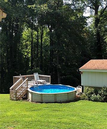 well maintained, sellers love the neighborhood, but need to downsize. Heat pump 3 yrs, new full bath down, large kitchen w oak cabinets,granite counters, per seller there is wood floor under carpet in bedrooms, fridge, washer & dryer all convey. Large sunroom on lower level. Above ground pool stays, 2nd carport perfect for RV with electric. Wood stove in den, gas logs in living, STORAGE - so MUCH storage! ceiling fans in all bedrooms, living & den. Den has new laminate floor. Lots of built ins plus almost an ACRE lot. Wooded back and nicely landscaped all around Additional professional photos and measurements coming soon