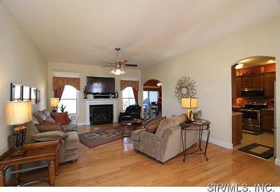 North Collinsville. Quality Custom Home with Open Floor Plan, 9'& 10' Ceilings, Split Bdrm Plan. Open Kit with Granite Counter Tops & more (gas & elec hookup for Range) MBdrm offers Tray Ceil, Huge Walk-in Shower measures @4'x8' w/2 Spa Jets, 2 W-In closets & more. Dining Rm currentyl used for Piano. 4Bdrms Total, 3Bths, Finished W-O Bsmt, 2 Fplaces. 2 laundry rms. 3 car Att'd Garage can fit 5 Cars & currently stores a 30' boat. Plus extra Garage in Bsmt is @26 x 18. MBath & Bsmt BATHS Both have Heated Floors. Brazilian Redwood Wood Laminate Flooring in Bsmt. Custom Trim & Moldings. Patio off Fam Rm and Covered Deck off Kitchen over looks back Yd that backs up to wooded area. Convenient to St Louis.