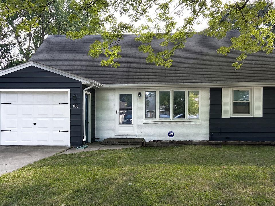 NO SHOWINGS UNTIL AUGUST 24TH. Cute and updated 3 bedroom story and a half home! Siding newly painted the new popular deep navy blue color. Front living room has bay window and real hardwood floors. Owner's bedroom on main level with cedar lined closet. Across the hall from the owner's bedroom is a very spacious main floor bathroom and also main floor laundry room. Washer and dryer can stay. Upstairs are the two spare bedrooms with good storage. Oak kitchen open to dining room. All kitchen appliances stay! Dining room has patio doors to 10 X 12 deck! Backyard all fenced in with six foot privacy fencing and storage shed that stays. Move in ready!