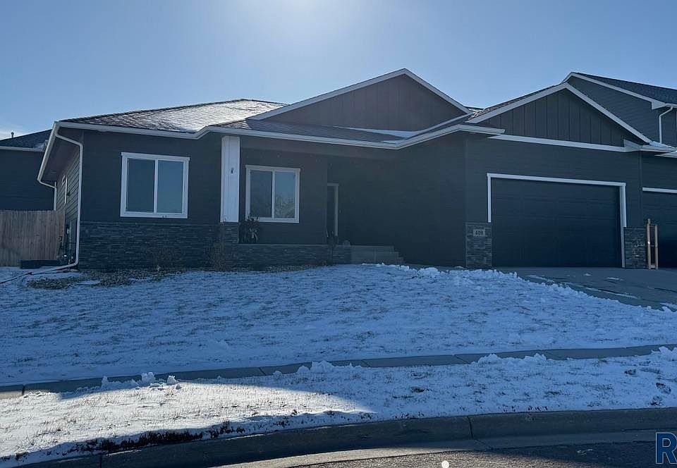 Brandon 5 bedroom 3 bath ranch home with nice front porch, open floor plan located in a cul-de-sac. This home was built in 2021, with over 1600 sq feet on the main floor and over 1400 sq feet in the basement. The kitchen has quartz countertops, stainless steel appliances, a gas stove, a walk-in pantry, main floor laundry, a master bedroom with master bath, 2 sinks, a walk-in tile show, and a walk-in closet, and 3 bedrooms on the main floor. The lower level has a large family room 36'x17' with a 110" projector and sound system for watching your favorite game or movies with friends and family. The lower level also has 2 bedrooms, a full bath, and a large utility room for storage. This home also has a large 3-stall heated garage with water and drains; the backyard has a large patio and privacy fence. This is a great home, very comfortable with nice finishes. The yard has a sprinkler system, rock, and edging.