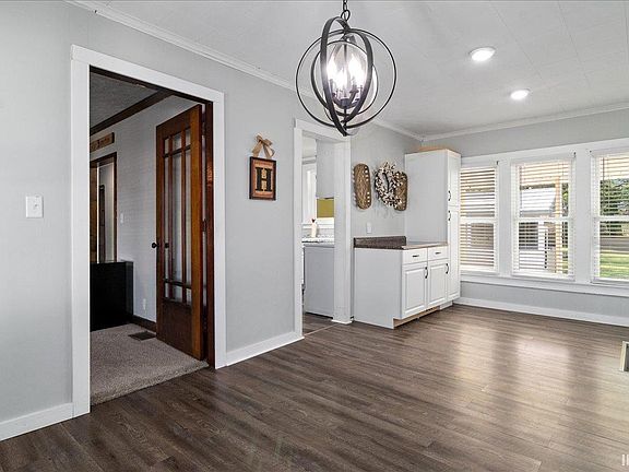 Charming ranch home with full basement, attached garage, and detached recreation building on a nice large .69 acre lot. This home has been remodeled and is ready to move in to! Plenty of room in basement to expand and add bedrooms if needed. Stylish kitchen includes all appliances. Large dining room with butler pantry , could also be used as a home office or play room. Spacious living room with nice ceiling fan and window blinds, leads out to a covered front porch. Bathroom has updated flooring, vanity and fixtures. Two bedrooms with nice sized closets and window blinds. Big open partially finished basement with bar, recessed lighting and sink. Enjoy the beautful fall weather on the 13x10 covered back porch. Lots of possibilities with the 32x16 recreation building with electric, concrete floor and some plumbing. Big beautiful lot which backs up to trees.