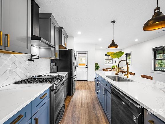 Essentially a brand new home in the North End! Having undergone a top-to-bottom remodel in 2021, this charming cottage offers the best of both worlds - modern conveniences within one of Boise’s best lifestyle locations. The home’s irresistible curb appeal is made of a darling front porch, stylish exterior colors, and professional landscape design. Every surface and major utility of the home has been renovated/upgraded, providing a move-in ready residence that doesn’t require the tedious maintenance of a historic home. Significant updates include: new electrical, plumbing, roof, interior doors, painting, flooring, fixtures, kitchen, bathrooms, HVAC, sprinklers, and landscaping. Inside, the open layout is lined with large Pella® windows, pouring natural light in and casting a bright glow throughout. The modern kitchen features a complete suite of black stainless steel LG® appliances, cabinets with soft-close drawers, marbled quartz countertops, and herringbone tile backsplash.