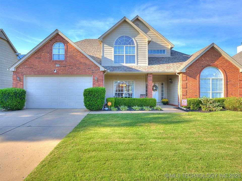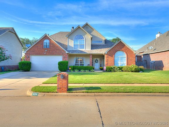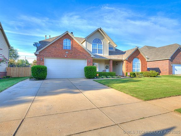 Primary suite on the main floor with en-suite bath featuring a jetted tub, separate shower, and a large walk-in closet. Upstairs offers a game room, plus a versatile flex room for office or hobbies. Formal dining, spacious living with double-sided gas fireplace, and an eat-in kitchen with walk-in pantry. Enjoy a stunning in-ground pool with custom waterfall, covered front porch, and back patio. Located in South Broken Arrow near shopping, dining, parks, and schools with quick turnpike access. Added features include a zoned sprinkler system and storm shelter.