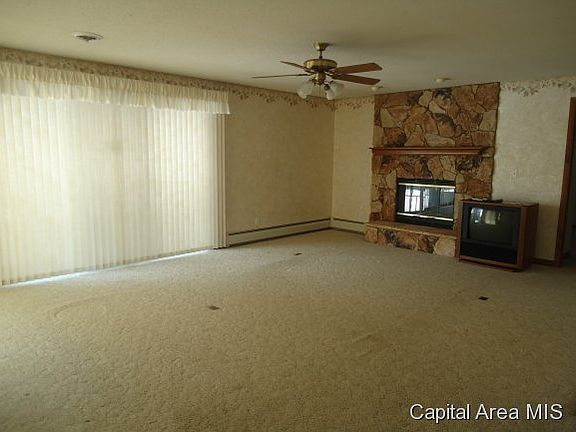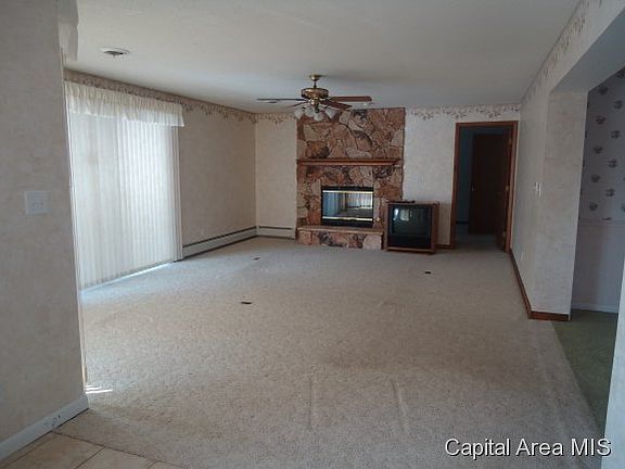 Spacious brick ranch with 3BR 1.5BA in a small town environment. This home offers large closets throughout, 2.5 car attached garage that is heated with lots of storage cabinets, 2 gas fireplaces, large kitchen with tiled floor, a huge cedar coat closet, & screened in back porch. Partially fenced back yard with patio area is great for entertaining. Boiler was replaced in `04. Outbuilding and all appliances stay.