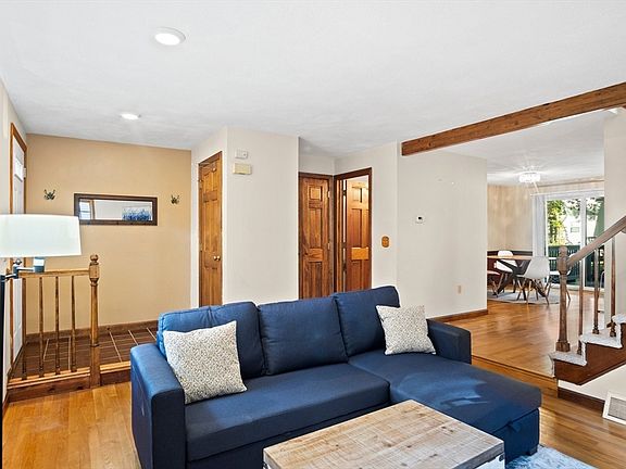 Welcome to the Williamsburg I Complex. This beautiful community is connected by tree-lined greenspaces and a wooded walking trail along the Merrimack River. Multiple community tennis courts and in-ground pools, as well as canoe/kayak river access, are available for exclusive use. #408 is a coveted end unit townhouse conveniently located to all of the amenities, with three deeded parking spots (including one carport). As you enter the unit, you will find a cozy living room featuring a brick fireplace, hardwood floors, and access to a half bath. The eat-in kitchen has a quartz countertop peninsula that seats four. The dining room sliding glass door leads you to the wooden patio, where you can enjoy the peaceful manicured gardens. Upstairs are two bedrooms, both able to fit king size beds, with ample space for a desk or seating area. There is also a full bath with a tub and laundry for easy living. The basement is finished and can be used as a family/movie room, and plenty of storage.