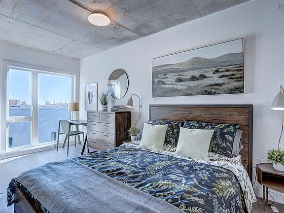 This 2 bedroom 2 bath, south-east facing unit is located on the back side of Agricola West and even has view of the Halifax Oval. The unit has floor to ceiling windows for excellent exposure to the morning sun. Heating is electric baseboards along with a heat pump that provides AC. The exposed concrete throughout the unit adds an industrial yet modern look. Parking is available for an additional $25,000 + HST. Bike storage is available in the basement/garage. Rooftop patio has an incredible view of the Halifax harbour, the commons, and is a great spot to enjoy a barbecue with friends. This pet friendly building is located in Halifax's ever-growing trendy North End. 2023-02-26