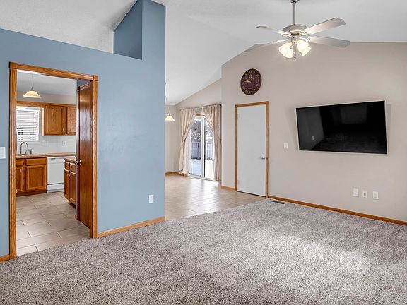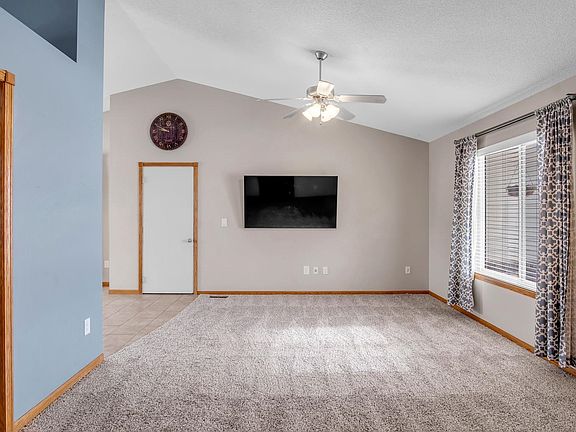 Spacious ranch in Wheatridge addition with lots of extras. Open kitchen/dining/living room floor plan with eating bar, all appliances, and a pantry that most homes in this area do not have with fridge, range/oven & built-in microwave only 2 yrs old. Main floor has vaulted ceilings and brand-new carpeting. Master bedroom has vaulted ceilings, walk-in closet, and a spacious on-suite bath with 2 vanities, a separate jetted tub, and a shower. One of the basement bedrooms has been used as an AMAZING and spacious MEDIA room with all equipment included and sound-resistant ceiling tiles. It's perfect for an awesome movie-watching experience!! Or it could be used for recording music or even a great space for your teen!! Basement includes another spacious 2nd bedroom, family room, 3rd full bathroom, and storage. Plenty of room in the spacious fenced backyard for children, pets, or entertaining with a covered patio. All TV mounts stay along with shelving in garage and basement. Your new home is within walking distance to Sand Creek Golf course and city splash park, and 1 mile from the YMCA, hospital, shopping, South Breeze elementary, and restaurants. Easy access to Highway 50 and I-135. Local city airport is only 5 miles east of town. Listing Agent is related to Seller.