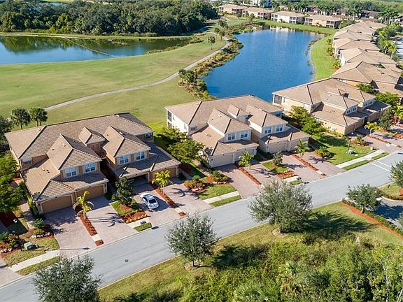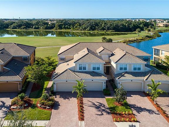 Resort living is calling your name. This fully furnished home comes with a deeded golf and social membership. This is the complete turn-key package, ready to move in stress-free. Begin enjoying the amenities or relax in the sunshine while others are shoveling snow. Located on 9th fairway of the Estuary course with a serene water view, not far from the 39,000 sq. ft. Clubhouse with a full service restaurant, bar and grill. A stainless steel kitchen appliance package includes a newer Samsung refrigerator. The split plan allows guests to have privacy with their own bedrooms and guest bath. The master bedroom is extra-large with a sliding door to the lanai, a luxury bath, walk-in shower and two walk-in closets. The 23' x 10' screened lanai is the perfect place to begin or end your day with picturesque sunsets at no extra charge. Your membership includes pools, golf, tennis, pickle ball, 2 fitness rooms, a Community Room, Library and Pool Table, and more. The year-round entertainment calendar offers something for everyone including dance parties, card clubs, bunco, bus trips, wine dinners, holiday parties, Name That Tune and more. River Strand is a community where neighbors soon become friends. Heritage Harbour Marketplace offers Costo and more retail and dining to come. Located near I-75 with easy access to Sarasota and Tampa. Beautiful crystal sand beaches are just a short drive away. Funiture purchased on a separate agreement. Check out the Matterport 3D tour by clicking on Virtual Tour 2.