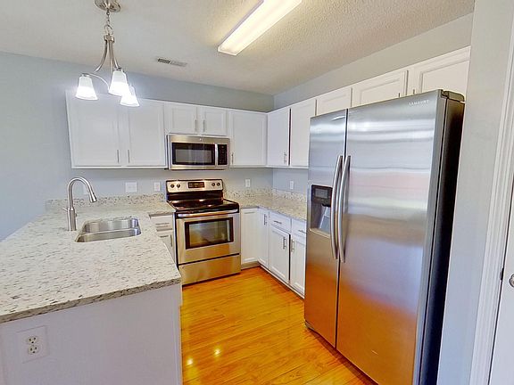 Welcome home to this meticulously maintained home conveniently located off Gum Branch! Boasting a blue exterior with wood stained shutters, this home is sure to catch your eye! Inside you'll be greeted by a vaulted ceiling and cozy living room fireplace. Into the kitchen, you'll find beautiful countertops, white cabinets with modern pulls, and a pantry. The primary bedroom features a walk in closet and dual vanity bathroom. Two more bedrooms and a full bathroom are located on the opposite side of the home. The backyard features a privacy fence perfect for any furry friends!
