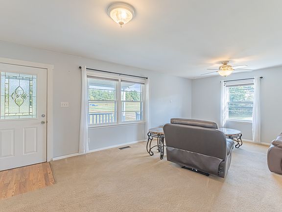 **BACK ON MARKET AT NO FAULT OF SELLER.** Drive down a long, gravel driveway to this cozy 2 bedroom, 1.5 bath hidden gem. It’s expansive covered porch offers a comfortable place to relax and enjoy the country views. Inside, a spacious open-floor plan offers a lot of natural light. A bonus room added to the front of the home adds extra space for an office/rec room. The kitchen features updated countertops and a large middle island/table with 5 stools. The primary bathroom is refreshed with new flooring, vanity, toilet, and integrated shelving/storage. A large utility room offers plenty of storage space with a washer and dryer included. The attic in the home has an exhaust fan. This 1.5-acre property features a 16x12 shop with power, a 14x12 lean-to, and an additional 13x10 shed for extra storage at the rear.