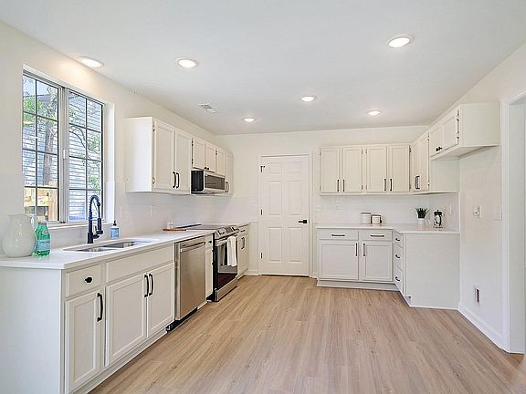 Welcome to 4080 Bonaparte Drive. A beautiful three-bedroom two and a half -bathroom home centrally located in North Charleston, the home is near Boeing, Charleston Airforce Base, Tanger Outlets, the Airport, I-26 and I-526, short drive to local shopping and dining options, No HOA and is move-in ready. Upon entering the home, you are greeted with new luxury vinyl floors, elevated finishes, designer fixtures, and a beautiful wood-burning fireplace. The tastefully remodeled eat-in kitchen features recessed lighting, stunning quartz countertops, a stylish subway tile backsplash, and stainless steel appliances. As you walk upstairs you will discover a spacious owner's suite featuring vaulted ceilings, a masterfully renovated en-suite bathroom, and a walk-in closet. Additional guest bedroomsare great size and share fully renovated bathroom. When you are ready to enjoy the nice weather, take a step into the lovely fenced-in backyard an ideal spot for sitting and soaking up some sun, or grilling out with family and friends. This is the home you have been waiting for! Additional features include: Full flooring (carpet and LVP throughout), Full paint, New kitchen, new stainless appliances, cabinet hardware, tile backsplash, and quartz countertops. New lighting throughout. Fully updated bathrooms. New interior doors throughout the home. New ceiling fans. New water heater New garage door and motor. Painted garage, new gate, and fencing on the right side of the house. Painted shutters and front door.