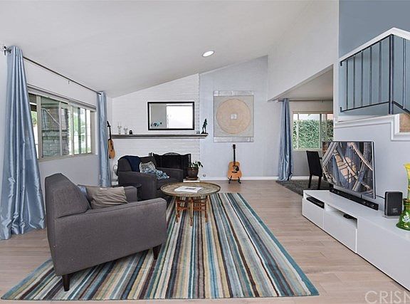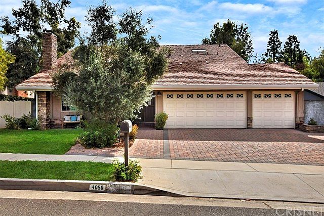 Stunning 4 bedroom, 3 bath 2,440 sq. ft. pristine Mulwood home is light, bright, and airy. Massive curb appeal that is so inviting with pavered driveway and walkway to the front door, grassy front yard, and stone work on the bottom portion of the home. Come inside and feel welcome in the sunken living room that is open to the dining room and kitchen. Nestle up to the cozy fireplace. Half inch hardwood and composite floors run from the entrance throughout the living, dining, family rooms and the kitchen. The recently remodeled kitchen features stainless steel appliances, Caesar stone counter tops, farm sink, an island with seating, recessed lighting, and tiled backsplash. The kitchen is open to the lovely family room that has sliding glass doors to an entertainer's paradise in the backyard. The backyard features a generous patio, spacious grassy area, pool with jacuzzi, and an outdoor fireplace. You can also relax and let out some steam in the sauna located in the garage. One bedroom and one bathroom located downstairs would be great for having visitors. Upstairs you will find the master suite with palatial bedroom and master bathroom that has granite counter tops, jacuzzi tub, and shower with two shower heads. The other two bedrooms upstairs are connected to a Jack-and-Jill bathroom. Situated close to three award winning Las Virgenes School District schools, makes this the perfect home for a family or those that are planning a family.