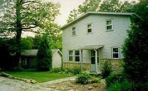 Secluded on nearly two acres and located just 7 minutes north of the stadium. This house is situated off Old Meyers Road with just one other house at the end of the lane. The setting is quiet and natural with no other houses in sight. The lot extends to a creek at the bottom of the hill with a large flat area suitable for volleyball games. Two decks with walkout lower level and patio overlooking a wooded ravine. One car garage for storage. There is also a woodstove and propane gas logs for heating.