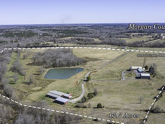 62.7 acres with custom built home with wrap around porch, large deck, 1.6 acre pond, pastures, fenced and cross fenced, nice stand of hardwoods, 16 car storage spaces plus: 6 car capacity in climate controlled terrace level, 5 car garage 28' by 60', 45' by 48' RV building with room for 4 cars and one large RV, 60' by 80' farm shed with 5 horse stalls and tack room with additional room for storage, open pole barn, shop and 1800 plus feet of Sandy Creek. Home features hardwood floors, hard surface countertops, 2 fire places, large master suite with oversize bathroom with his/her closets. 2 large guest suites (one on main, one on terrace level) with en-suite bathrooms and walk-in closets. Terrace level features wood burning fireplace, overhead door, ample space for 6 autos and several motorcycles, wood burning stove with internal access to main level. Total enclosed car storage is 16 (includes 1 full size RV space). Farm buildings can be easily modified for car storage. This property can serve both your car and horse hobbies! . Property is in Conservation Use Value Assessment (CUVA) beginning Jan 1, 2014 Ends Dec 31, 2023 and Buyer will agree to continue CUVA and said agreement will survive the closing.