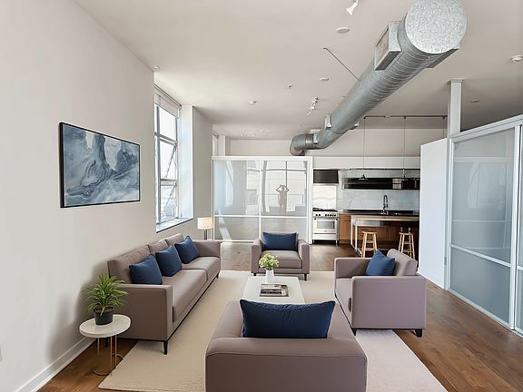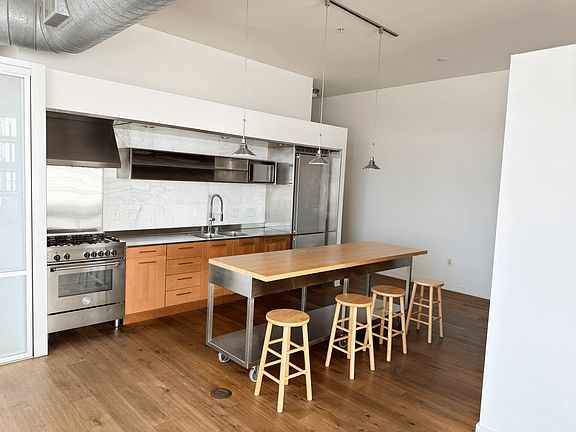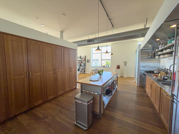 This urban-style loft includes a spacious bedroom with an oversized closet. In-unit washer/dryer, Nest-controlled central air and heat, and a mobile island make daily living feel effortless.