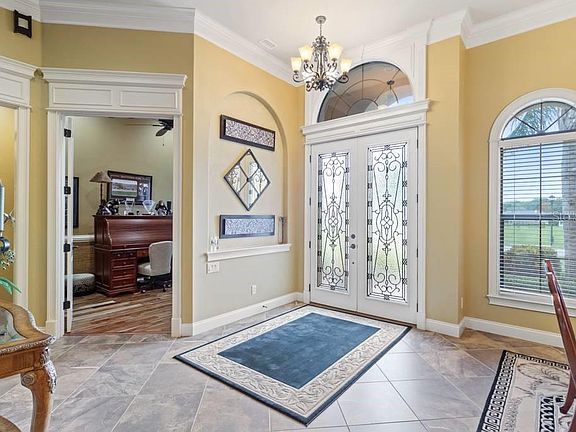 Gorgeous and move in ready! This quality Olivera built home offers 4 bedrooms, 3 bathrooms, plus an office. Many upgrades including: granite counters, stainless steel appliances, crown molding, generator, beautiful tray ceilings, tons of storage and an outdoor built in Grill area surrounding a beautiful screened pool with a private and serene setting. The large gourmet Kitchen with island and ample storage is open to the family room for all your social gatherings. Upstairs you will find a large bonus theater room. Nicely landscaped on a half-acre lot with no rear neighbors. Formal living and dining rooms, Large master bath with garden tub, separate walk in shower and dual vanities. Nice paver driveway. Located in the Gated community of Grandefield on Poley Creek offering tennis courts and a walking trail. This home is spacious, inviting and spectacular.