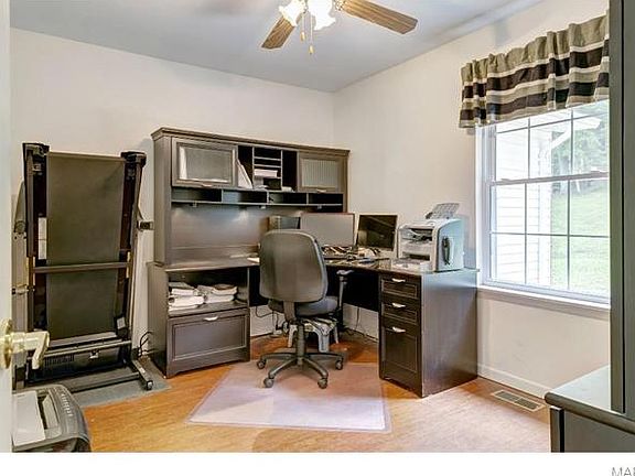 THE POOL IS OPEN AND THE PRICE HAS BEEN REDUCED! This LAKEFRONT HOME is just a short hop off I-44 & tucked behind Shaw Nature Reserve & one of Missouri''s newest state parks you will find this newer ranch home on 3+/- acres w/3 bedrooms on the main plus a den that may also be used BR. Guest quarters on the lower level has additional bedroom. Could be a 5 BR, 3 full, 1 half bath. The bedrooms are generously sized. The floor plan is open w/stone fireplace as the focal point of the living room. Beautiful cork flooring recently added to main living areas. The master suite w/full bath & walk-in closet has private access to the deck that overlooks the in ground pool & private wooded yard. Pool currently uses chlorine but can be salt water. The lower level is finished & makes for the perfect hang-out while enjoying the pool or game night complete with family room w/second fireplace, rec. room, & tiled floor area for future kitchenette. With 3rd full bath could be in-law suite.