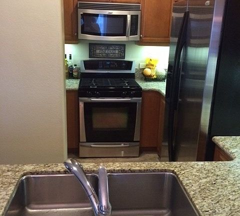 Complete info: http://4080karstroad.AgentMarketing.com - This town home boasts one of the largest back yards in the community. Tropical back yard with large glass lawn section, awesome built in BBQ island with refrigerator for entertaining. Inside this home looks just like a model home with tile flooring downstairs, plantation shutters, granite kitchen counter tops, stainless steel appliances, clothes washer, dryer and stainless steel refrigerator included. Large screen TV about fireplace is included with stereo surround sound system. Fabulous.