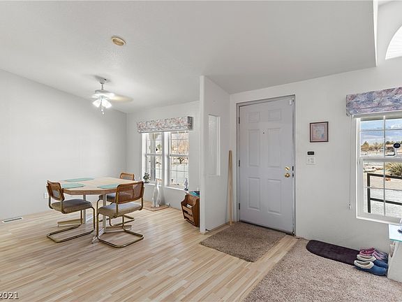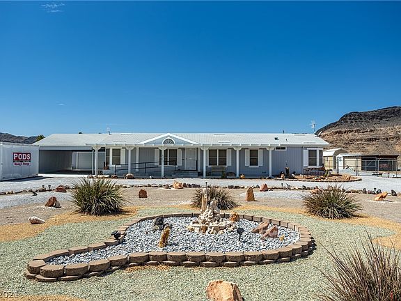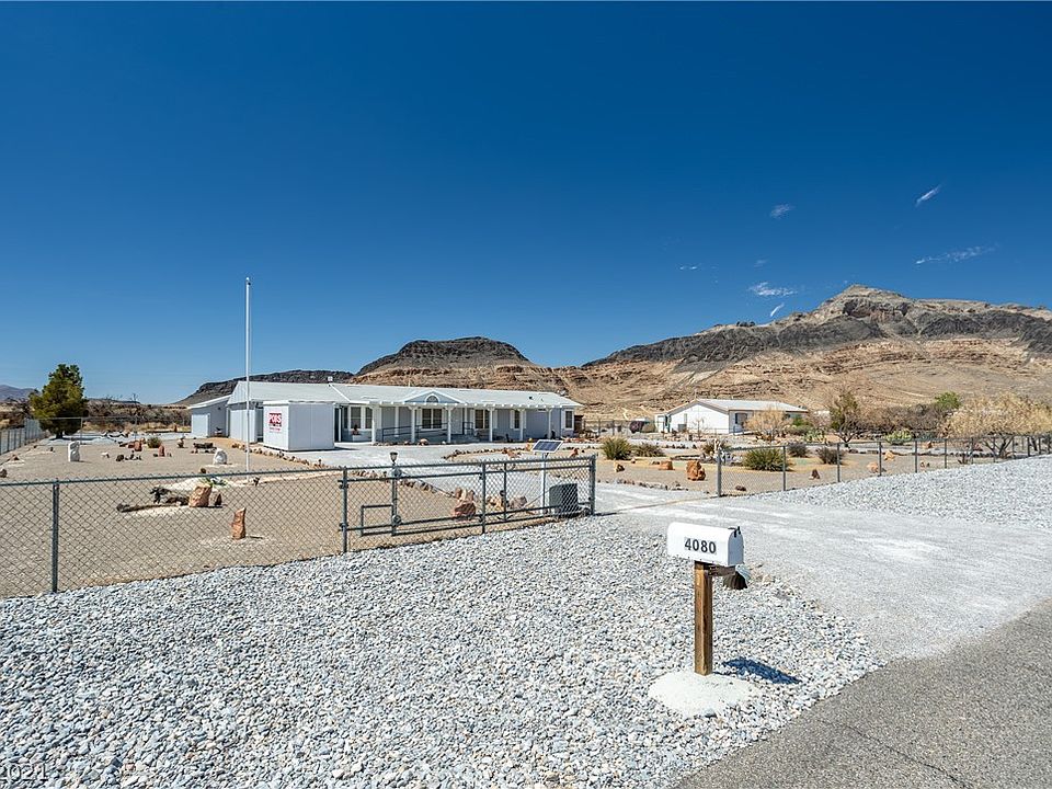 Welcome home; this property is move-in ready, don't let the age detour you; one owner shows pride in ownership. BLM access from your rolling gate at the back of the property. This home has 4 bedrooms, 2 baths, plus an office/ den 2 car garage with a 12x26 air-cooled workshop. Additional carport. Allumawood awnings front and back with a screened-in porch. Concrete ramp at the front door with security doors front and back and on the garage man door. Foundation is a full slab anchored at approximately every six feet; This home was set right—custom shades throughout with motorized shades in the master bedroom and one of the secondary bedrooms. All appliances stay 2 refrigerators; freezer; water softener. Fully fenced with 6 ft cross fencing in the rear, plus circular driveway with one double gate and one solar motorized gate. Mountain views front and back. The home is in the process of being converted to real property; please allow 8 to 10 weeks for closing.