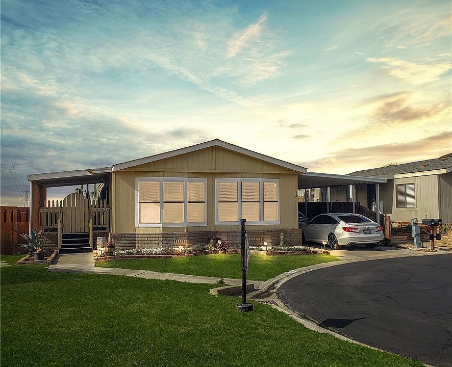 Welcome to the highly desirable Bravo Estates! The second you drive into this community you will fall in love with the tranquility of this neighborhood and its picturesque mountain views. This is an amazing opportunity!! do not miss out on your chance to live in Jurupa Valley!! This home has a brand-new roof! Roof was upgraded in 2023. Talk about peace of mind with this purchase. This home also has new laminate flooring throughout. This charming home features 2 bedrooms and 2 full bathrooms and a very spacious walk-in closet! Conveniently located close to the 60 freeway. Kitchen has plenty of storage space. Washer and dryer room. Home also features a gorgeous and very private backyard with views to the city. This home is nestled on a very private and prominent lot location. It is located at the end of the cul-de-sac and only steps from the refreshing pool and amazing community amenities. This serene community offers an abundance of amenities: pool, jacuzzi, saunas, billiards, recreational room and much more. It really does not get better than this! Don't miss your opportunity to own this gem! Schedule your showing asap! Call for gate code.