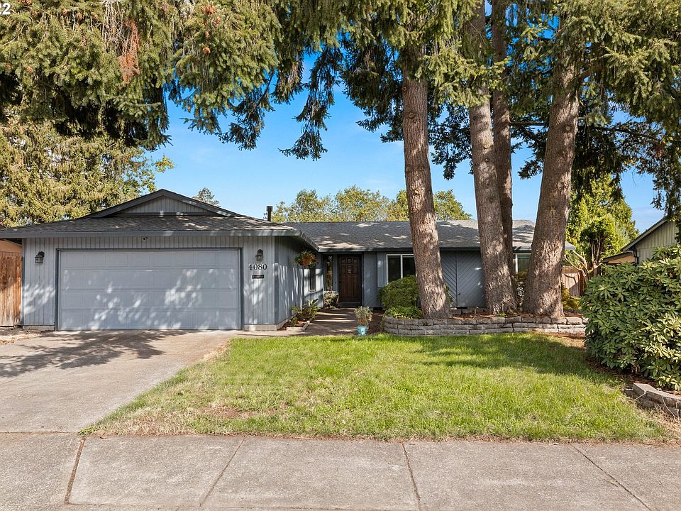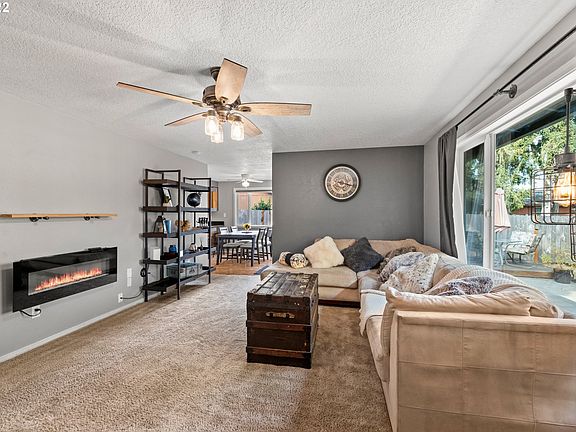 Desirable move in ready single story home featuring 3 bedrooms and 2 bathrooms. Kitchen features granite counters and stainless steel appliances. Appliances included. Wall mounted fireplace stays. Primary bathroom updated with quartz countertop. Covered deck and fully fenced backyard with firepit area great for entertaining. Don't miss the garden on the south side of the home. A/C. Newer roof (2016). Welcome home!