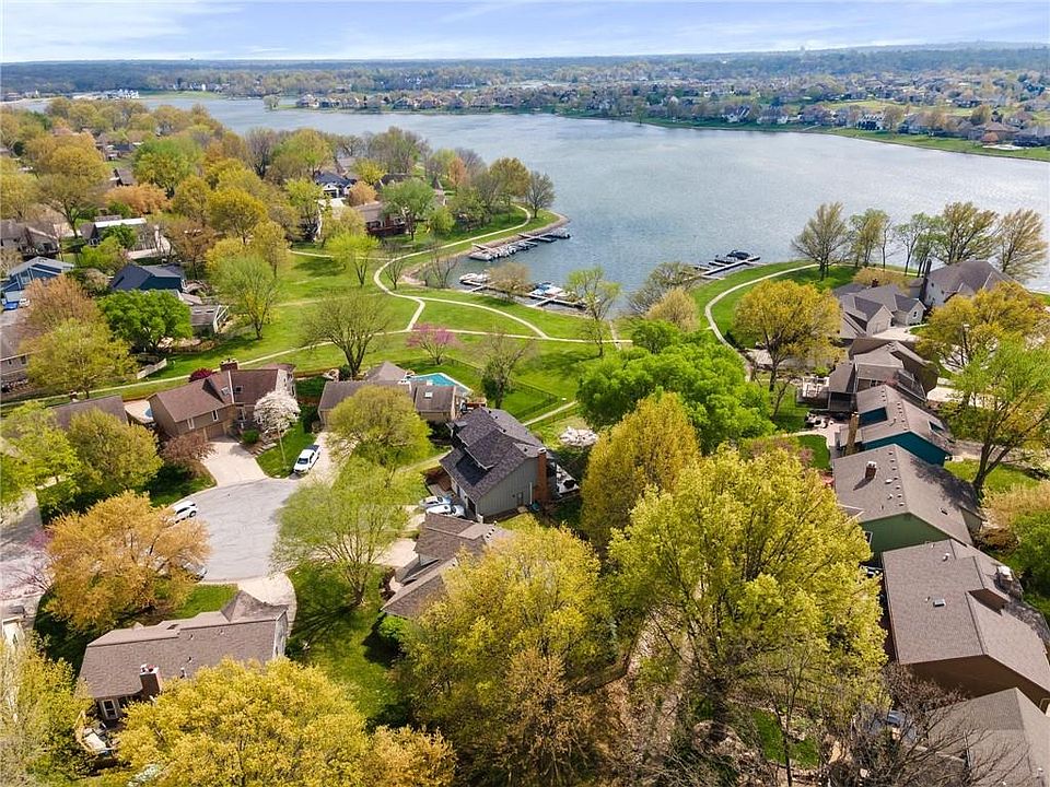 Terrific opportunity to live in Raintree Lake community with a lake view on a quiet cul-de-sac lot in the Lee's Summit School District! This is a very well maintained 1.5 story home providing main floor living w/newer roof (2019) and HVAC (2016). The living room features vaulted ceilings, built in shelves / cabinets, and a gas fireplace. The kitchen has beautiful hardwood floors, stained cabinets and newer appliances. There is a peaceful sunroom off the kitchen that transitions to the deck with a gorgeous view of the lake. The main floor primary suite includes a jacuzzi tub and shower, double vanity and walk-in closet. Two great sized bedrooms upstairs with a full bathroom. Plenty of unfinished space downstairs for storage or your own future finish and it's stubbed for a bathroom. Just a stone's throw from the lake, the home backs to a walking trail that loops around it. This is a great chance to enjoy the lake life!