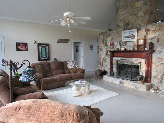 You can have it all on this property! A lovely home, a really big barn/garage/storage building, a cook house, a pond complete with a boat and land to just enjoy or plant a garden. The home is immaculate and is so inviting! The living room is very large & has all new Low E light windows with a big stone fireplace - what a view! The dining room is directly behind the living room and has a nice stone fireplace wall and french doors that open to a new Trex patio. The kitchen has numerous beautiful natural wood cabinets complete with all appliances. You have a great view of the backyard and the pond from the kitchen window. The barn/storage/workshop building is complete w/electricity. Adjoining this building is a lovely kitchen (complete w/stove & refrigerator) and dining area for hose big get togethers. The pond is stocked w/catfish and bass just waiting for your and your fishing pole!