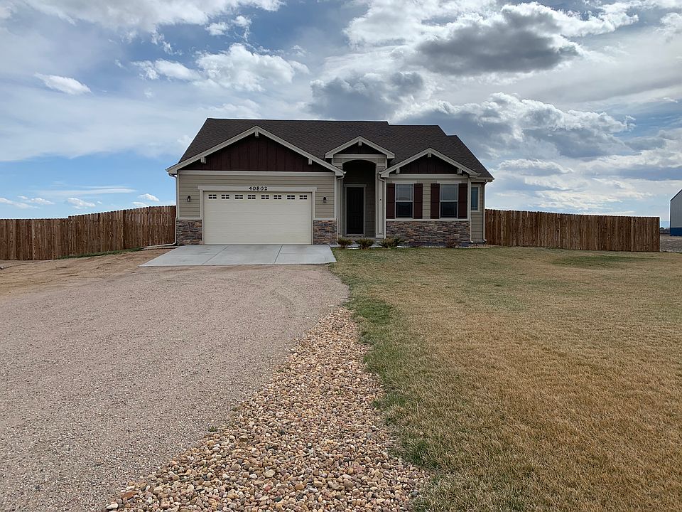 Beautiful home on an acre of gorgeous land! Bring your horse and your RV! The neighborhood even allows for a shop to be added! Wood laminate flooring and high ceilings welcome you into the open floor plan in this ranch-style home. The eat-in kitchen features granite countertops, subway tile backsplash, stainless steel appliances, an electric range, a large island and a pantry for additional storage. Cozy up by the gas fireplace in the living room! The home offers 3 bedrooms and 2 bathrooms, including the main floor master suite with a walk-in closet and a large bathroom with 2 sinks and another bedroom that has French doors. The main floor also showcases a spacious laundry room. The unfinished basement makes for a great opportunity to expand the living space and has a plumbing rough-in for a bathroom. See this home today!