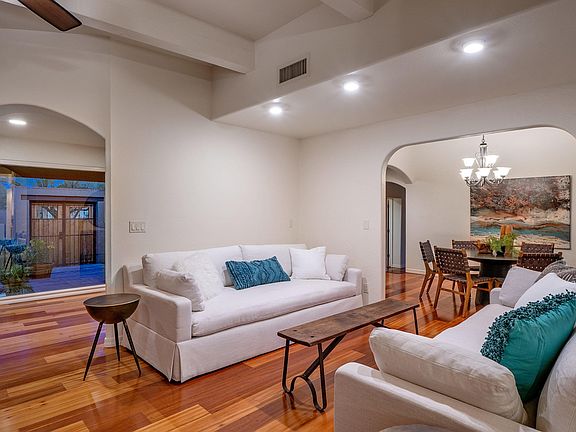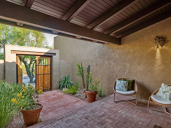 Nestled within the highly sought after Las Alturas community, this stunning home possesses a refined fit and finish level felt immediately upon entry. Beyond the home's private courtyard approach, one is greeted by a light-filled and resplendent floor plan, replete with warm vertical tones and textures complimented by striking woods floors that float seamlessly throughout the space, providing a visual and tactile experience. Natural light filters through an array of large picture windows, framing the Catalina Mountains and City Lights beyond. Move past the foyer to find the cozy and casual living, dining and family rooms, opening onto the gourmet chef's kitchen, featuring top end stainless steel Viking appliances, custom cabinetry, granite counter tops and ample storage. The layout lends itself to entertaining family and friends alike, offering a split bedroom concept, with the master suite sequestered on the Northwest end of the property, captivating it's audience with a large walk-in his/her closets, luxurious bath and windows from the bedroom spilling out over private rear courtyard. The outdoor spaces organize and focus around the Catalina mountains and city lights as they form a series of spatial engagements, all there for your personal enjoyment on this premium homesite.