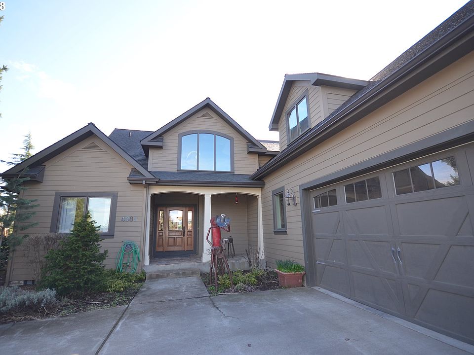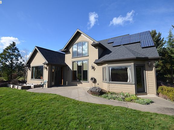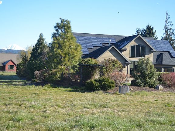 A luxury country home 2 acres, w/ gigantic dbl mtn views- what more could you ask for!? This custom-built home features vaulted ceilings, two-sided fireplace, & flowing open floor plan. 3 bdr, w/ a large bonus room that can be converted into a 4th bdr, or even a MIL suite! Mt. Hood views from main-floor master suite, dining room, & upstairs landing. Dog washing station in smartly designed utility rm! 240sqft shed on property.